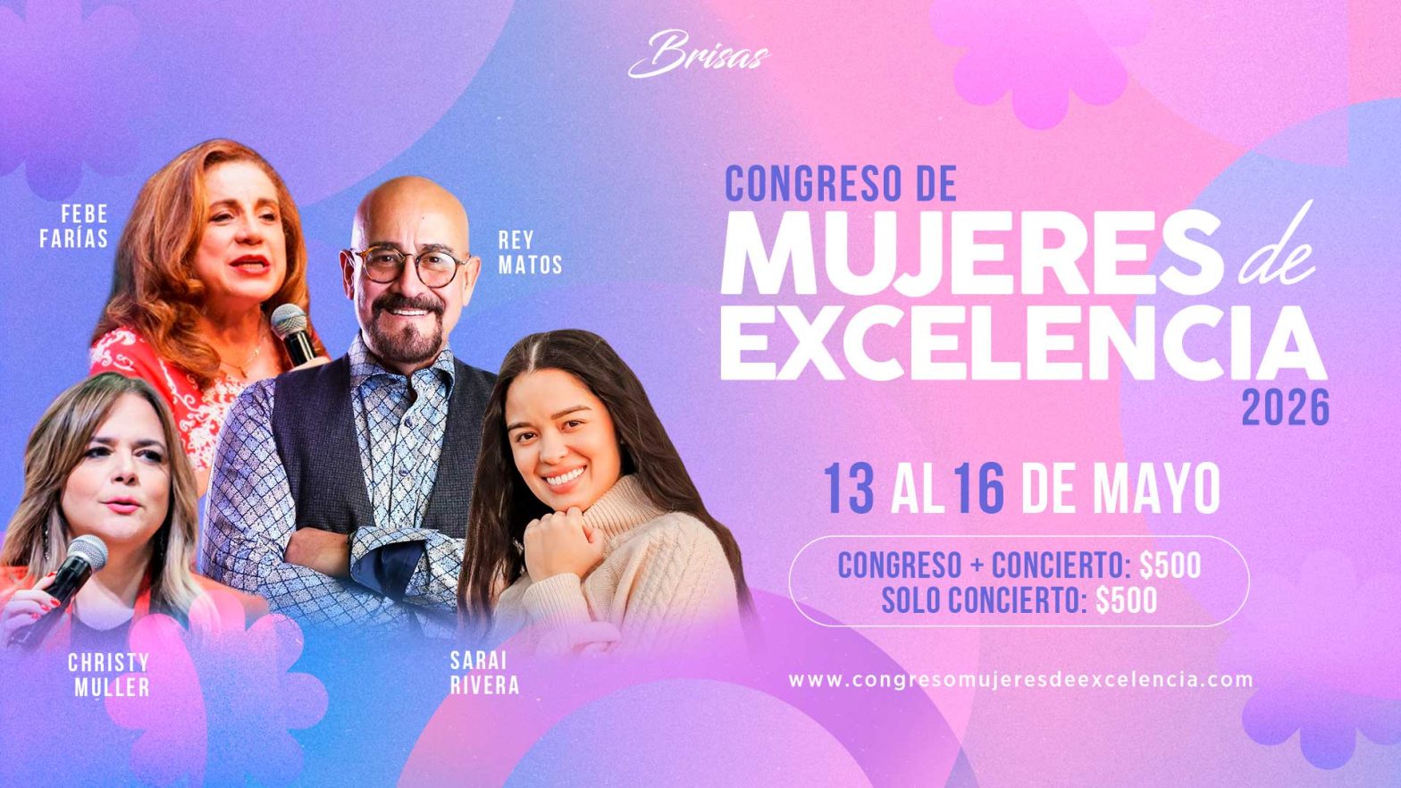 Congreso Mujeres de Excelencia 2024 Fecha: del 13 al 16 de Mayo 2026 Lugar: Castillo del Rey Brisas Costo: $ 500 Compra en linea: Sitio web de Castillo del Rey Brisas https://castillodelreybrisas.com/evento/congreso-mujeres-de-excelencia-2026/